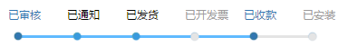 以进度条形式直观展现销售之后的各个环节处理情况,包括是否发货、是否开发票、是否收款、是否送货安装等。打开单据就能看到执行进度。